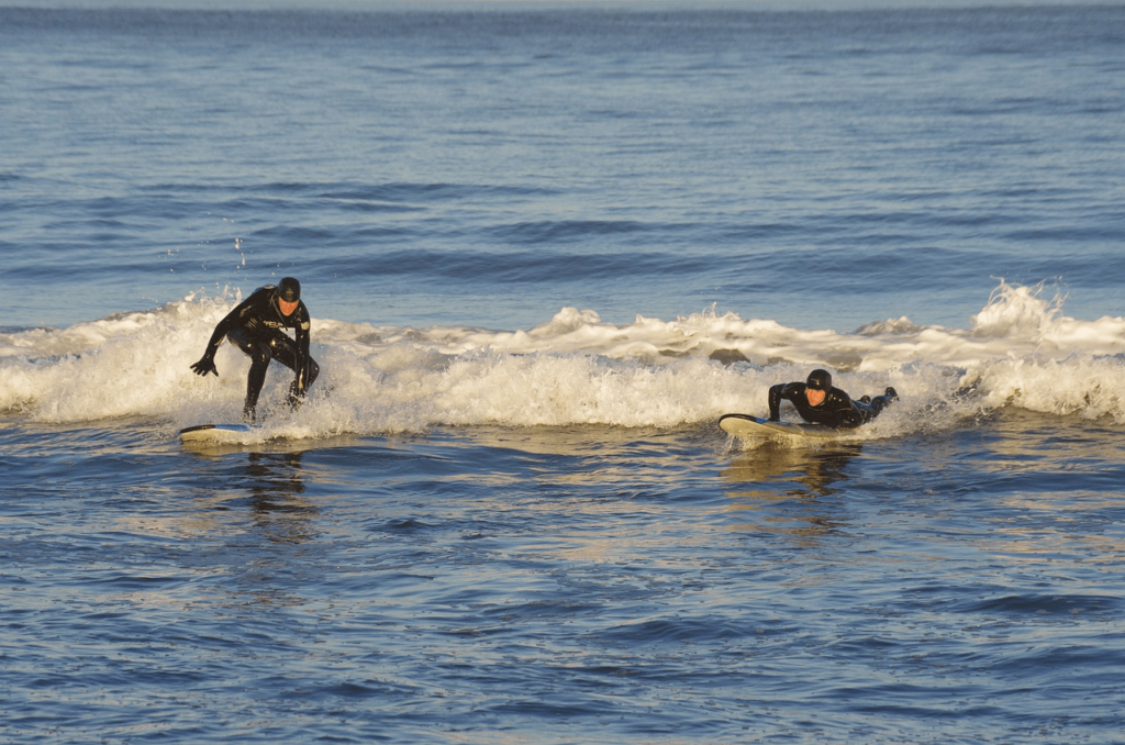 浅瀬の方が波に乗る練習がしやすく、波に乗る感覚に慣れておけば、沖に出た時にも焦らずに落ち着いて練習できます。
