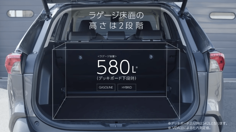 さらに荷室フロアの高さを2段階で調節できる”2段デッキボード”は注目するべき機能で、下段にセットすれば荷室高が55mmアップし、背の高い荷物も積載でき、上段にセットすればフラットな荷室エリアになるので、車中泊で重宝しそうです。