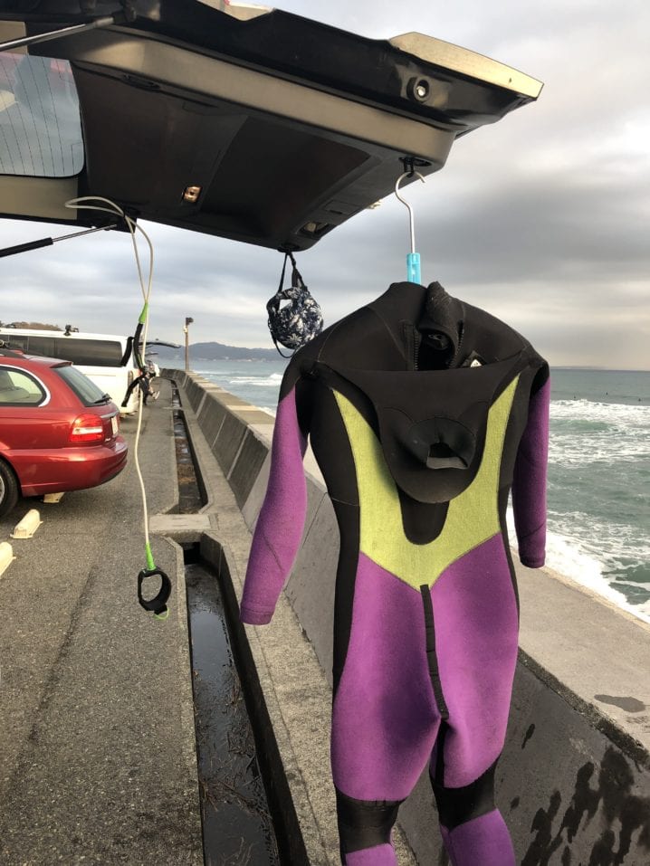 サーフボードは立てかけて乾かせば問題ありませんが、ウエットスーツはそうはいきません。