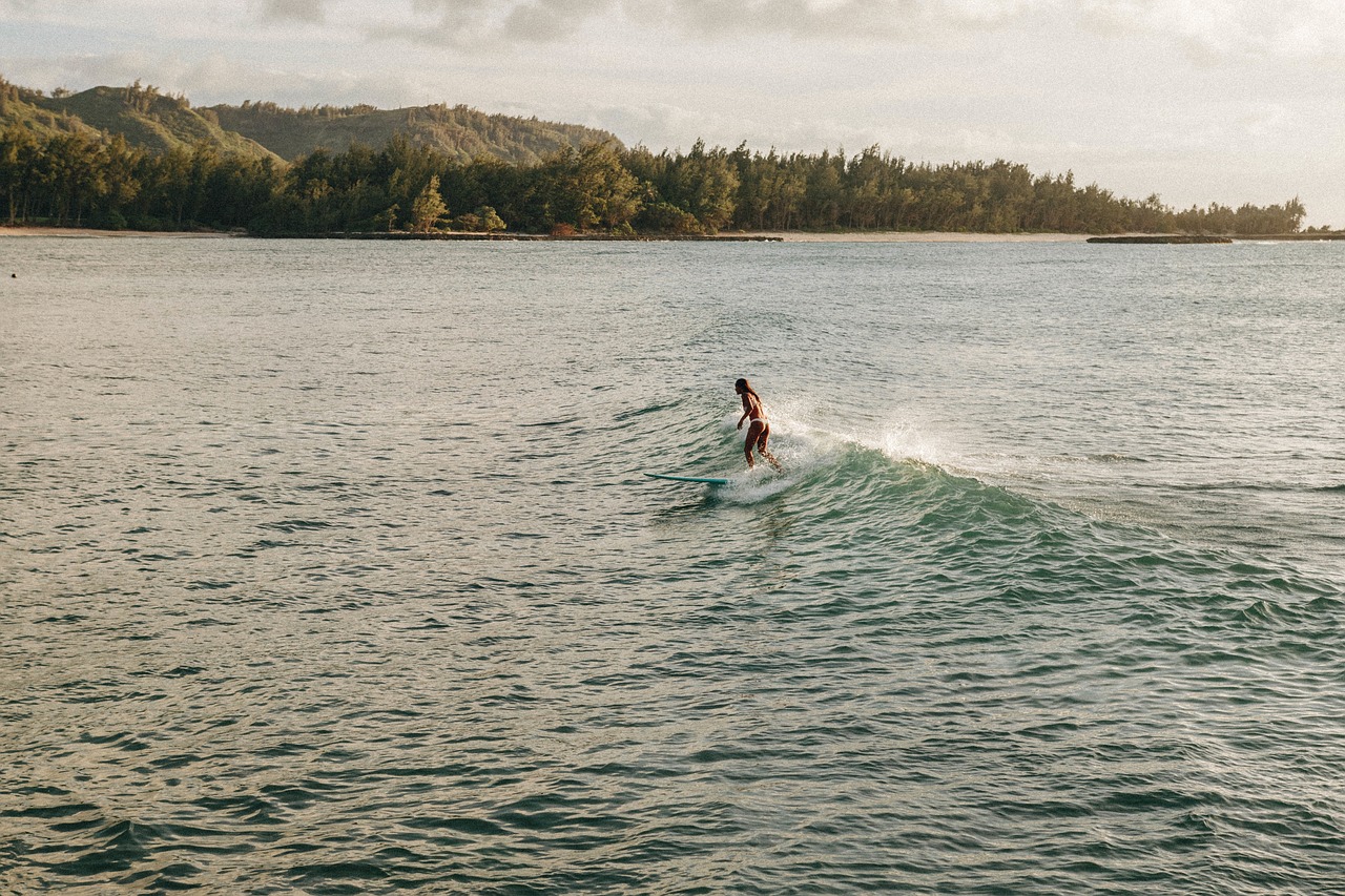 長いサーフボードは面積がある為、力の弱い小波でも押してくれる力を最大限に受けることができます。