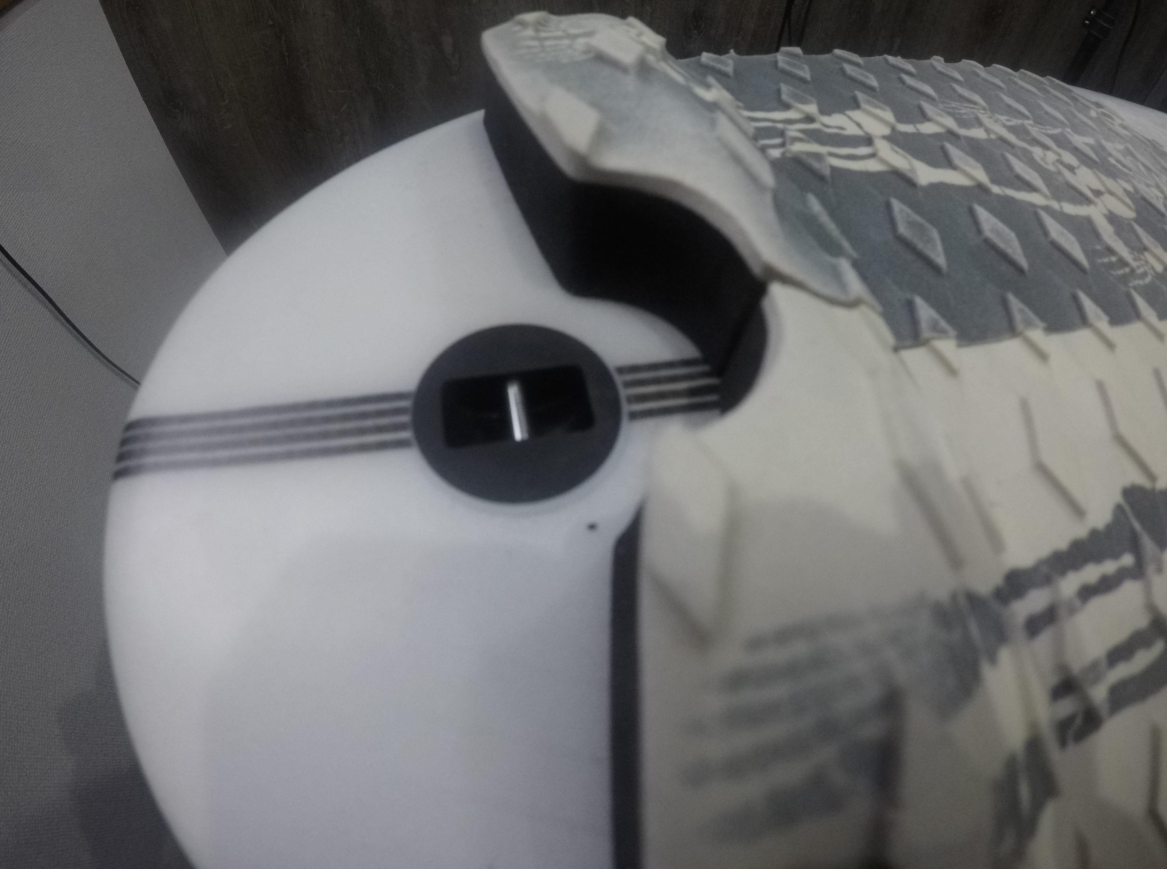 サーフボードのテール付近を見ると、ひもを通せるプラグがあります。