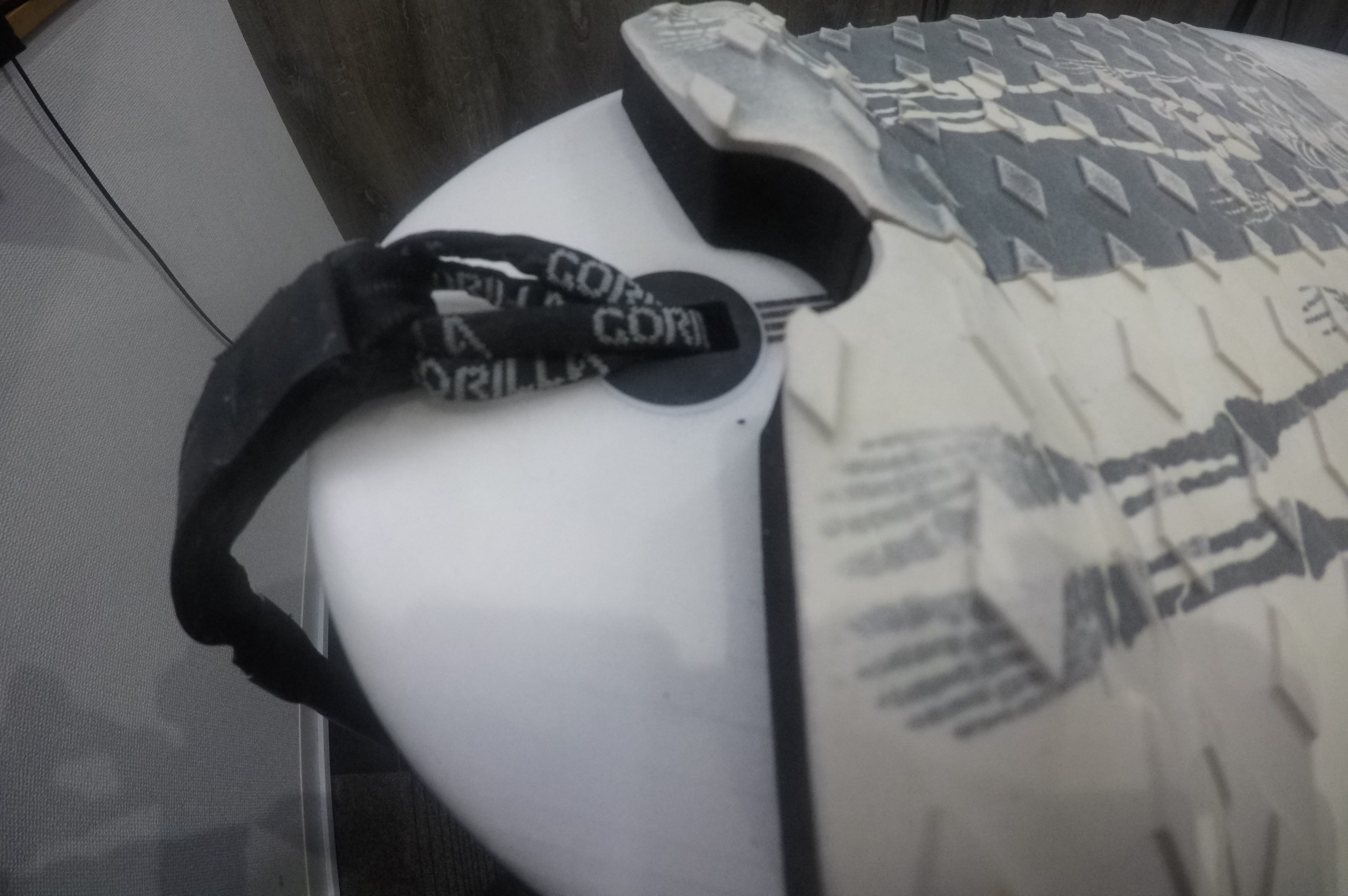 二重にすることでひもがサーフボードに干渉して傷をつけるリスクを無くせると同時に強度も上がります。