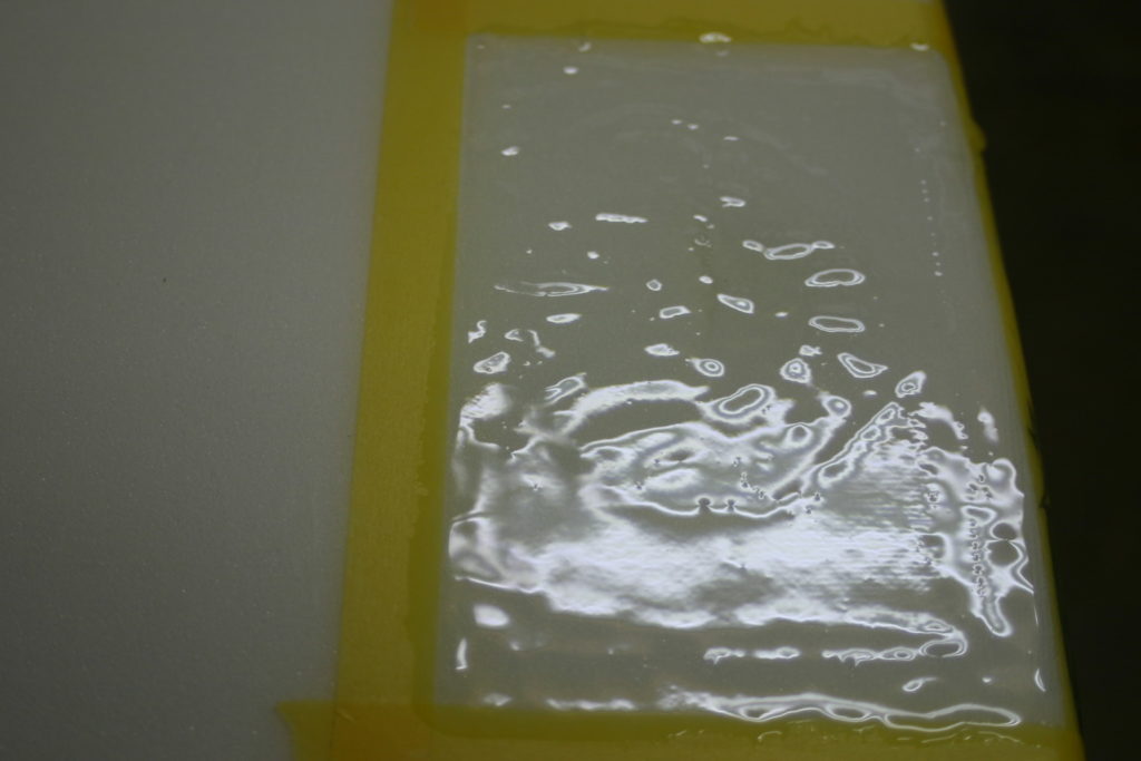 その上から樹脂を流してガラスクロスに染み込ませていきます。