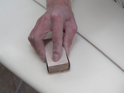 サーフボードはツルツルした感触なのでこれを少しザラザラにすることでこの後の樹脂をつける時、乗り食いつきがよくなります。