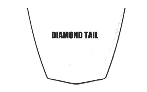 先端の尖った部分はピンテールな役割をし、左右の角のある部分はスカッシュテールな役割を可能とするテール形状です。