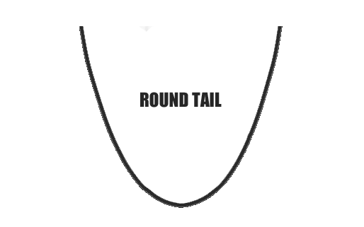 先端を尖らせたようなラウンドテール形状をラウンドピンテール、シャープに尖ったラウンド気味な形状をラウンドピンテールと呼びます。