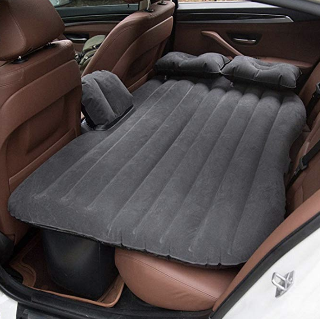 荷台にサーフボードやウェットスーツを積み、スペースがあまり空いていない方におすすめのIzawayのエアーベッドは、ポンプを使って空気を入れて展開させると、後部座席が快眠できるベッドルームに変身します。