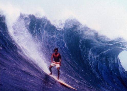 そんな時代に巨大な大波に乗る勇気を持つサーファーは少なく、周りのサーファーは誰も海に入りたがらなかった中、エディはボードを持って海に入っていき、見事巨大なノースショアの大波に乗ることに成功し、一躍有名になります。