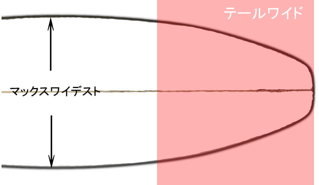 テールワイドが広いほど、安定感が増し、波の力を得られやすくなります。
