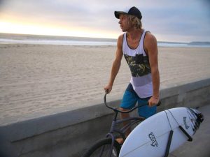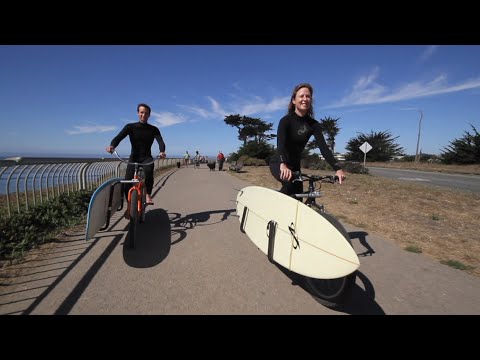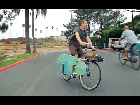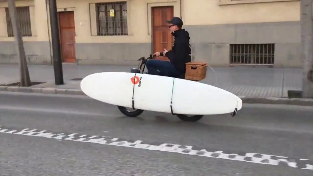 サーフボードキャリア付きの自転車があれば、わざわざ車を出さなくてもその辺のコンビニに行く感覚でサーフィンに行けるようになりますよ。