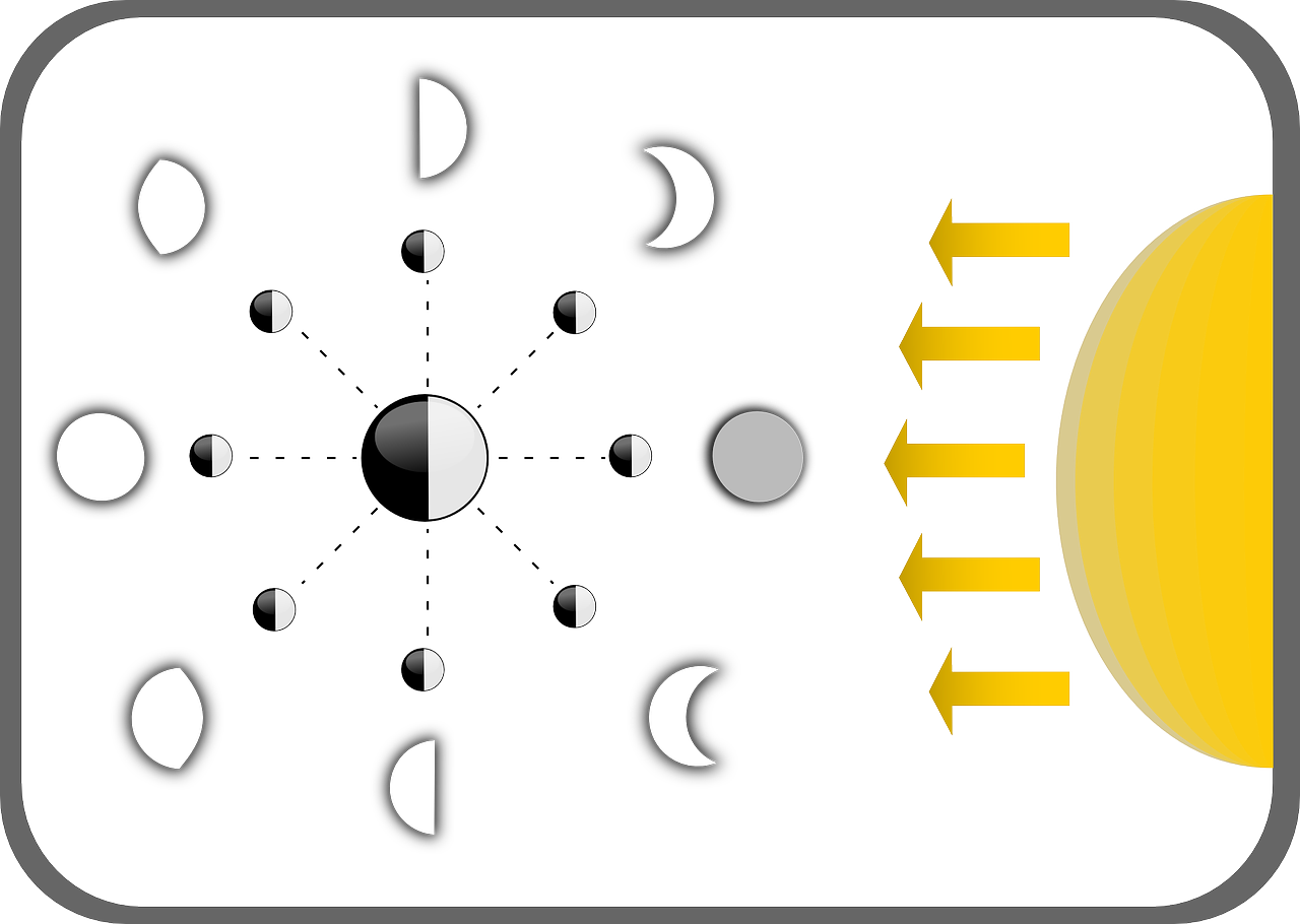 月は約27日かけて地球を1周しますが、その間に満月と新月になる時が1回ずつあります。