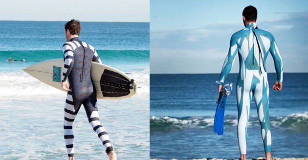サメは視覚で最終的に獲物を狙うのですが、サメの視覚を惑わせるために開発されたウェットスーツがあります。