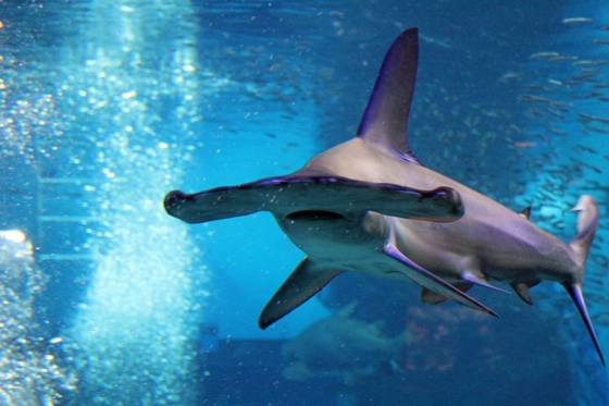 ハンマーヘッドシャークと呼ばれるその特徴的な見た目の頭部は左右に張り出していてT字型になっておりまさにハンマーみたいです。